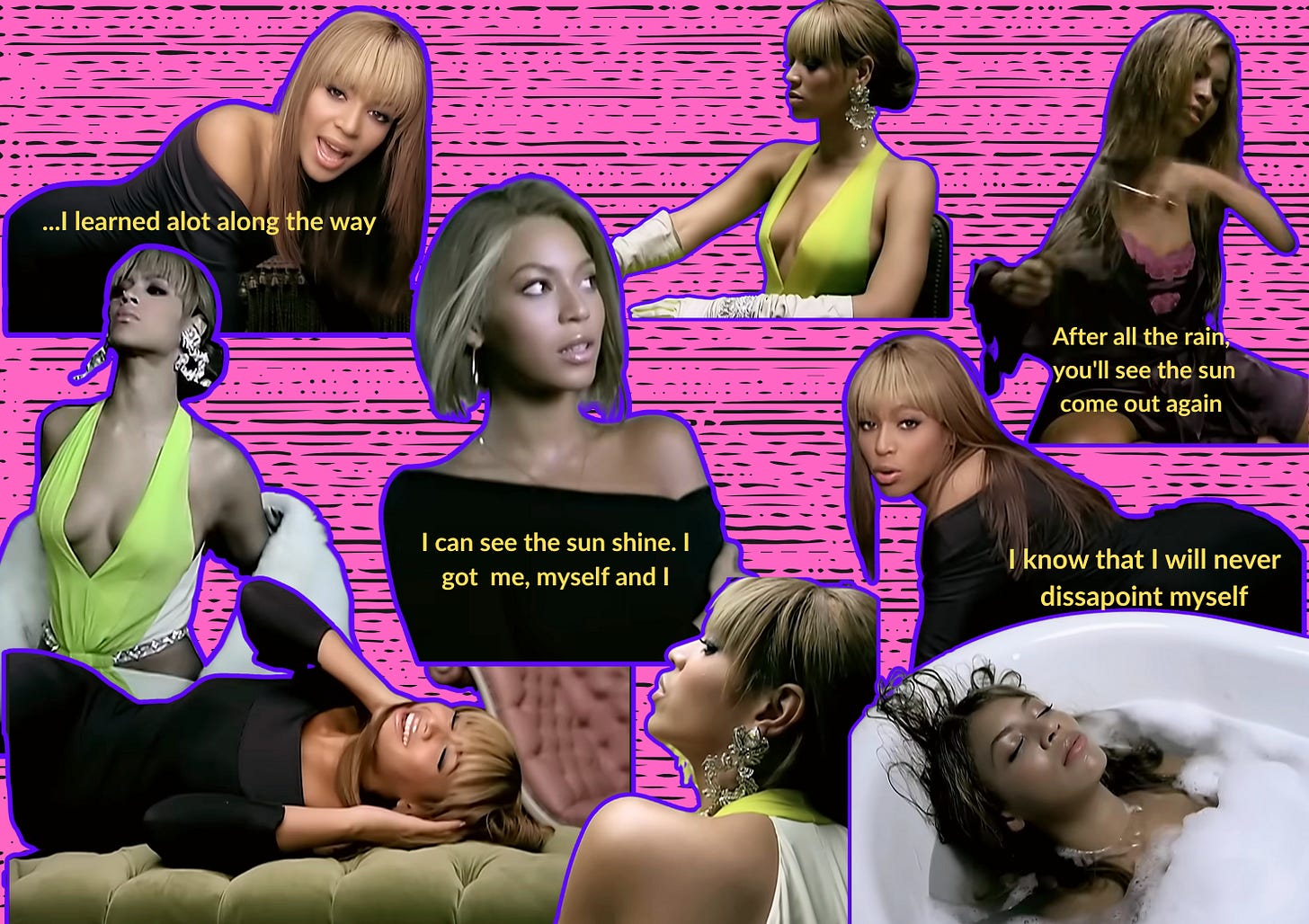 I’ve learned a lot along the way. I know that I will never disappoint myself (again). I can see the sun shine. I got me, myself and I.
